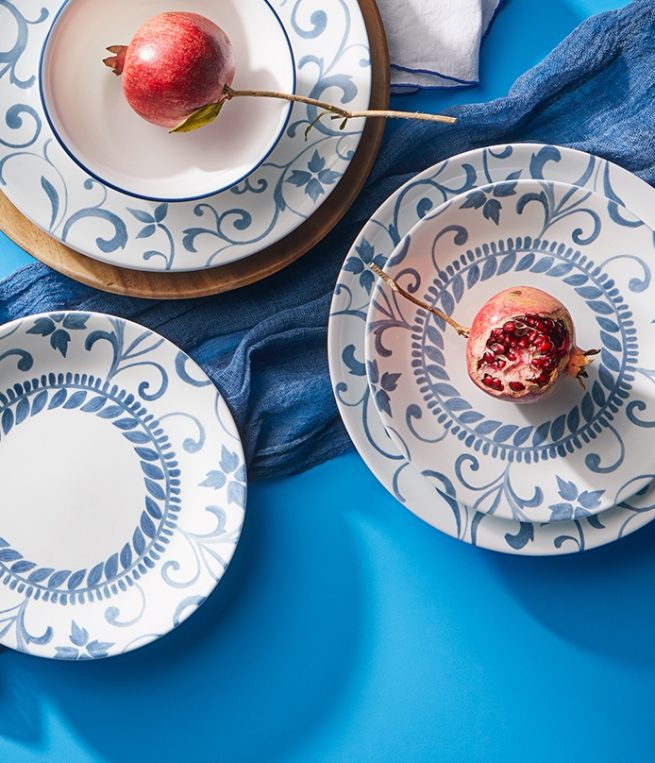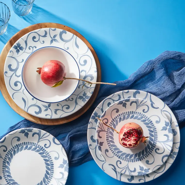 דגם ארטמיס בעל מוטיב פרחוני עם נגיעות חינניות בשולי הצלחת בגוון כחול ג'ינס. אולטימטיבי לאירוח אלגנטי מלא בסטייל.