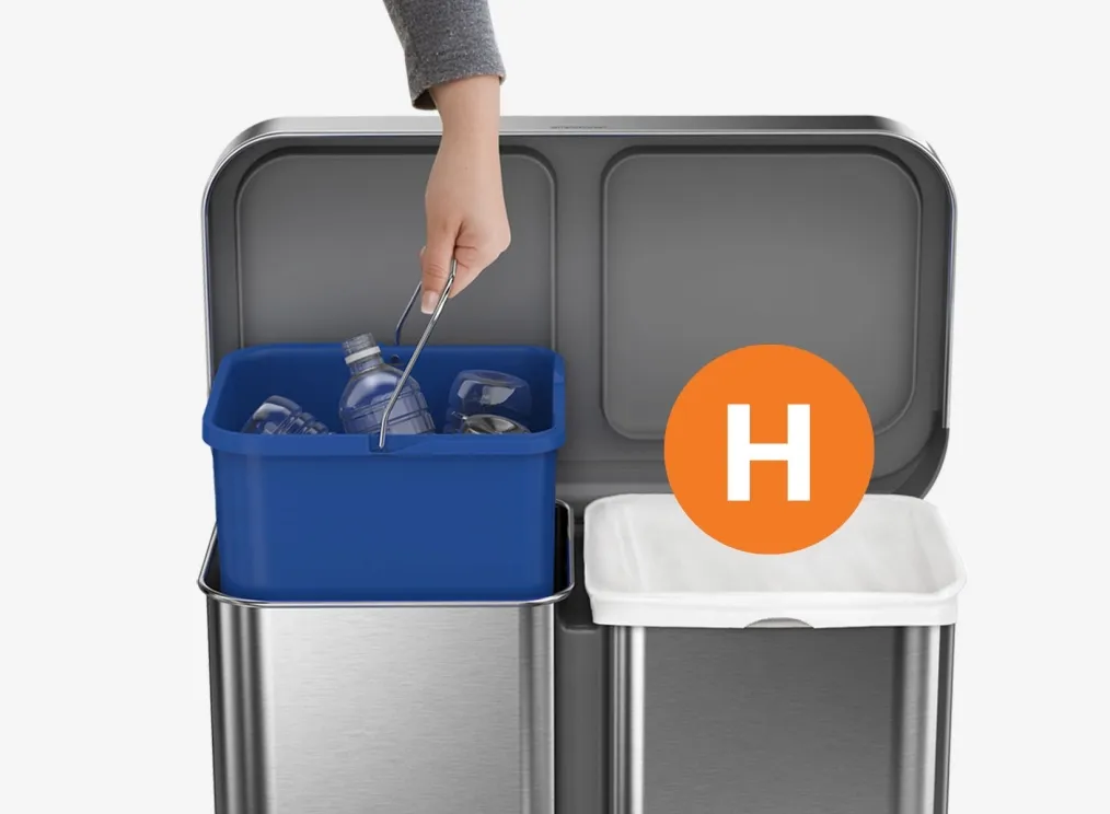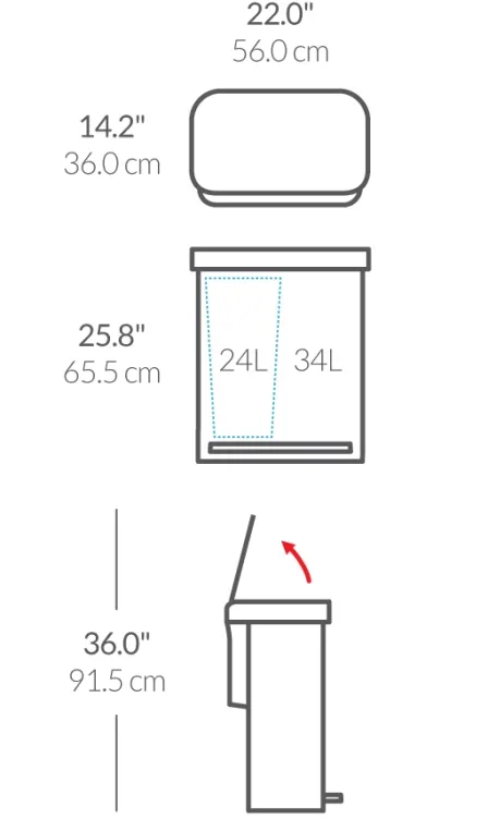 הדור החדש של הפחים! פח מיחזור מלבני של חברת סימפלהיומן האמריקאית, מחולק לשני תאים: 34 ל' ו- 24 ל'. צורתו המלבנית יכולה להתאים לכל מקום – העמדה קרוב לקיר, פינות הבית ועוד.