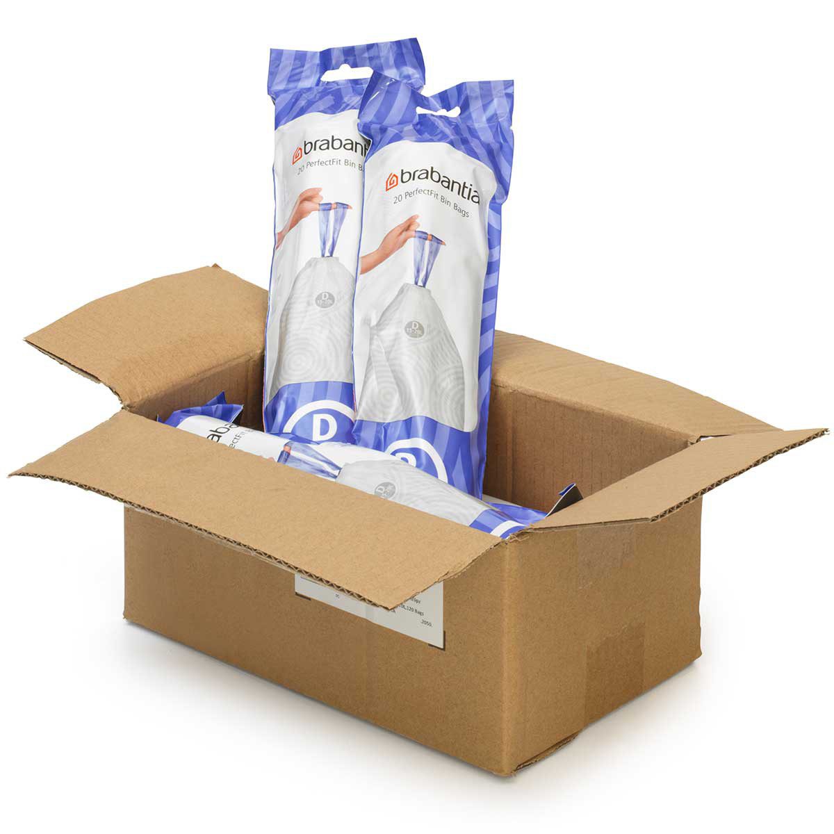 שקיות קוד D לפח אשפה 15-20 ליטר ברבנטיה חסכוניות, יפות, ללא שוליים מיותרים בקרטון 6 חבילות גלילים של 20 שקיות = 120 שקיות ברבנטיה
