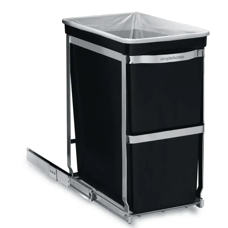 לשמירת האשפה הרחק מהעין, מוסתרת בתוך הארון – השתמשו בפח הפתוח בעל המסילה המובנית של סימפלהיומן. הפח קל להתקנה, ופשוט לשימוש יומיומי – מחליק מחוץ לארון באלגנטיות על מסילות מותאמות, לגישה קלה ומהירה.