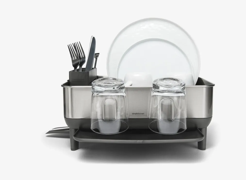 צורתו הקומפקטית של מתקן ייבוש הכלים בצבע אפור מתאימה לכל שיש, קטן כגדול, וכן לרוב הכיורים הסטנדרטיים לאחסון פנימי על מנת להשאיר את משטח העבודה נקי ואלגנטי. למתקן יש ידיות אינטגרליות להרמה של המתקן בקלות ובנוחות. המתקן מגיע עם משפך הנע על ציר 360 מעלות, אותו ניתן למקם בכל אחת מהדפנות, המנקז את המים ישירות אל הכיור, וכן סכומון קטן המאפשר לשמור על הכלים נקיים ומסודרים.