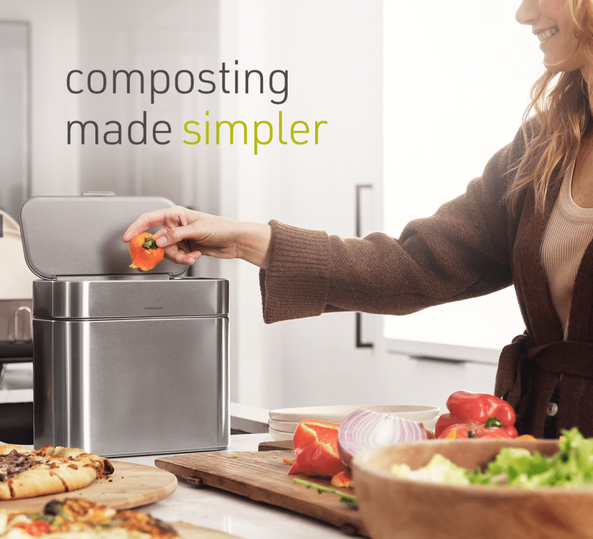 האכילו את הגינה שלכם ואחסנו שאריות קומפוסט בקלות וביעילות עם פח הקומפוסט החדש של חברת סימפלהיומן האמריקאית, המפחית ריחות.